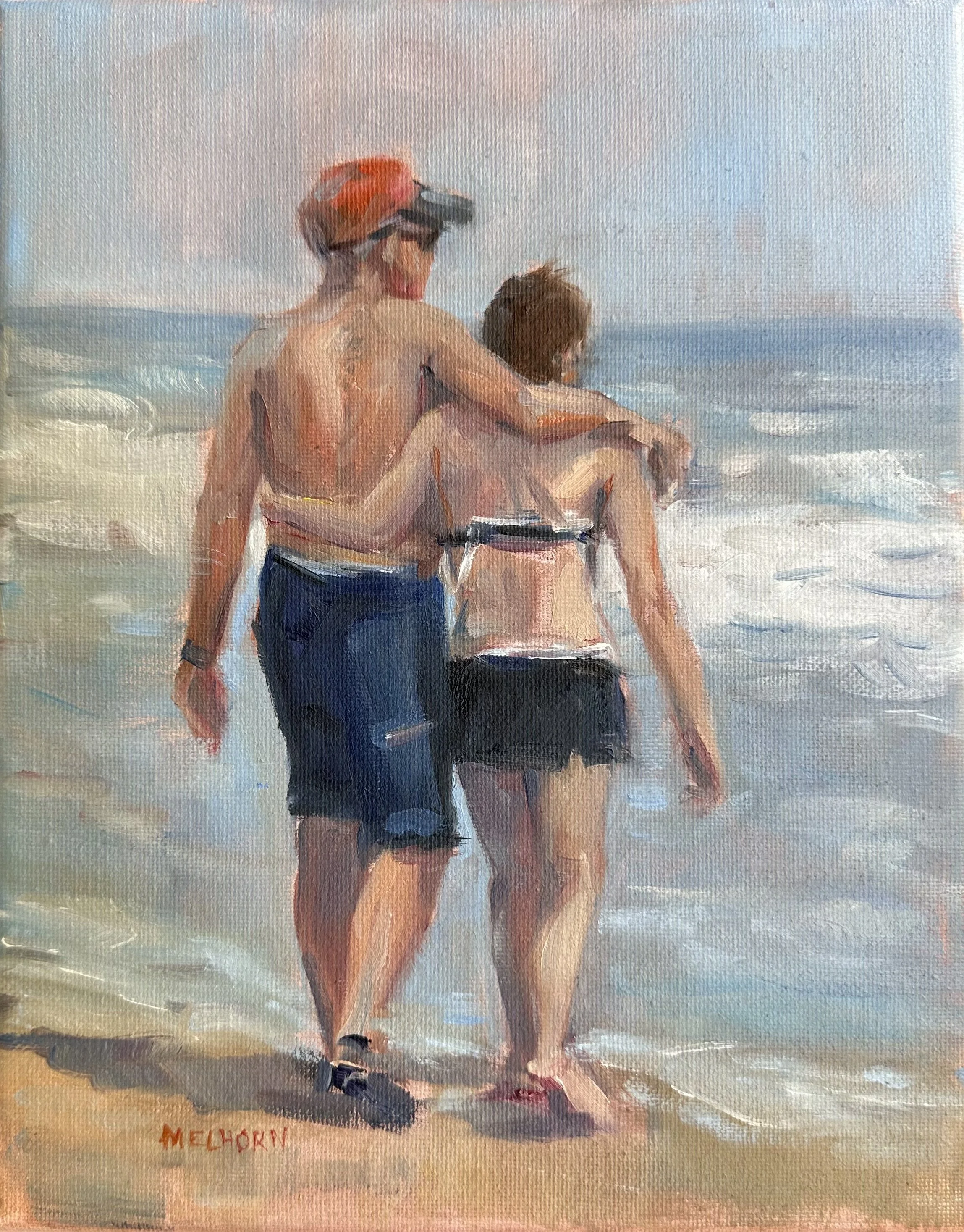 There is a story behind every painting. “Friendship” represents the special relationship between two individuals and how it poured over into our family vacations. They were quick to laugh, have coffee ready in the morning for a chat on the deck, play with the kids and then they would meander off to spend time together. On one of our trips, I watched them walk down the beach with the comfort of friendship and commitment. This painting brings feelings of gratefulness for the moments shared together.